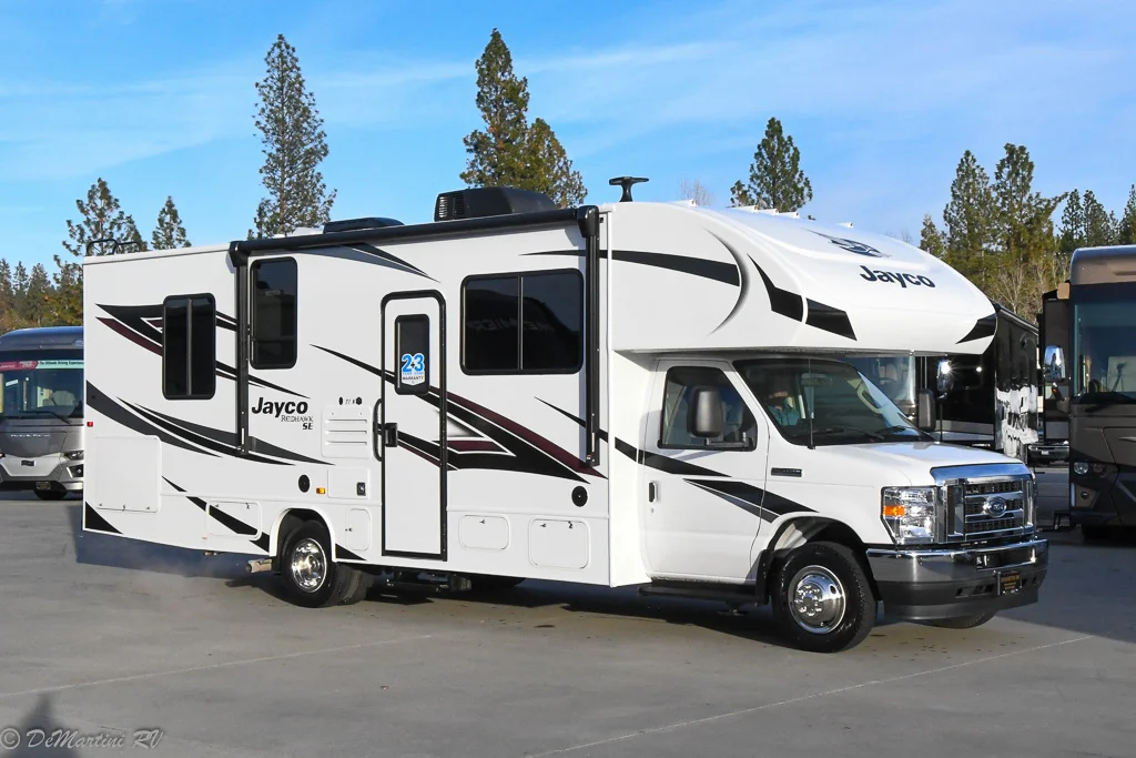Step into Class C ownership with the Redhawk SE built on the Chevrolet® 4500 chassis or Ford® E-450 chassis. With heated holding tanks, solar prep and an 8 cu. ft. gas/electric refrigerator, you’ll be excited to hit the road and stay out longer. A queen bed and overhead bunk with 750 pound capacity are just a few of the ways you can sleep up to five in Redhawk SE’s floorplans. Check out the Redhawk SE’s new exterior graphics package and new Ashville interior design for 2023.
