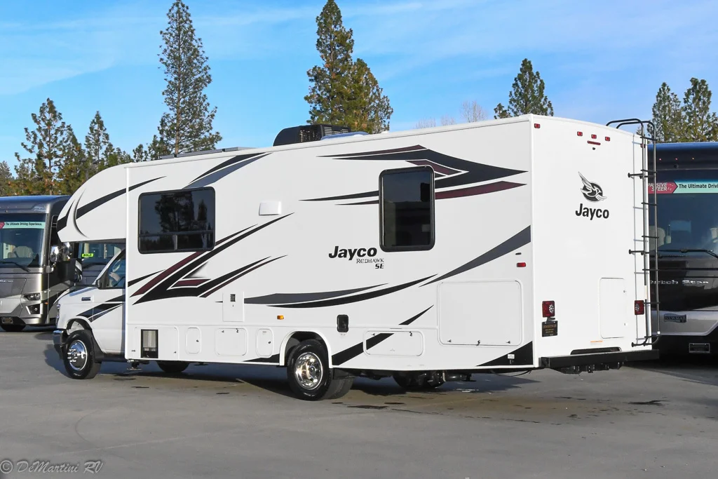 Ownership with the Redhawk SE is the perfect way to step into Class C living. With features like heated holding tanks, solar prep, and an 8 cu. ft. gas/electric refrigerator, you can stay on the road for longer periods of time. Comfortably sleep up to five people with a queen bed and overhead bunk which has a 750 pound capacity. The Redhawk SE even has a new exterior graphics package and Ashville interior design for 2023, making it the ideal choice for your Class C needs.